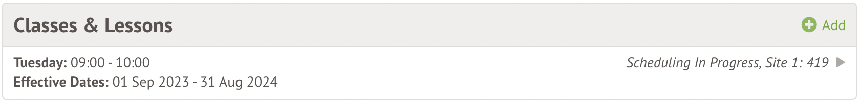 You will be taken to the module overview. To schedule lessons for this class, click +Add in the Classes & Lessons section.