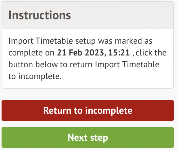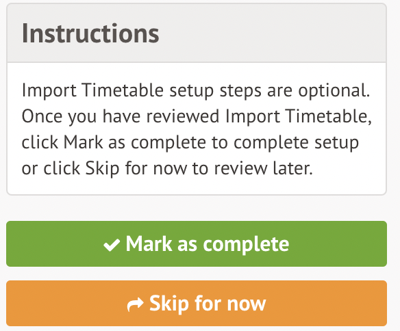 All your steps on the overview page should now be marked as complete (or skipped if you haven’t imported a timetable from TimeTabler).
