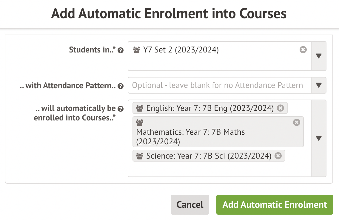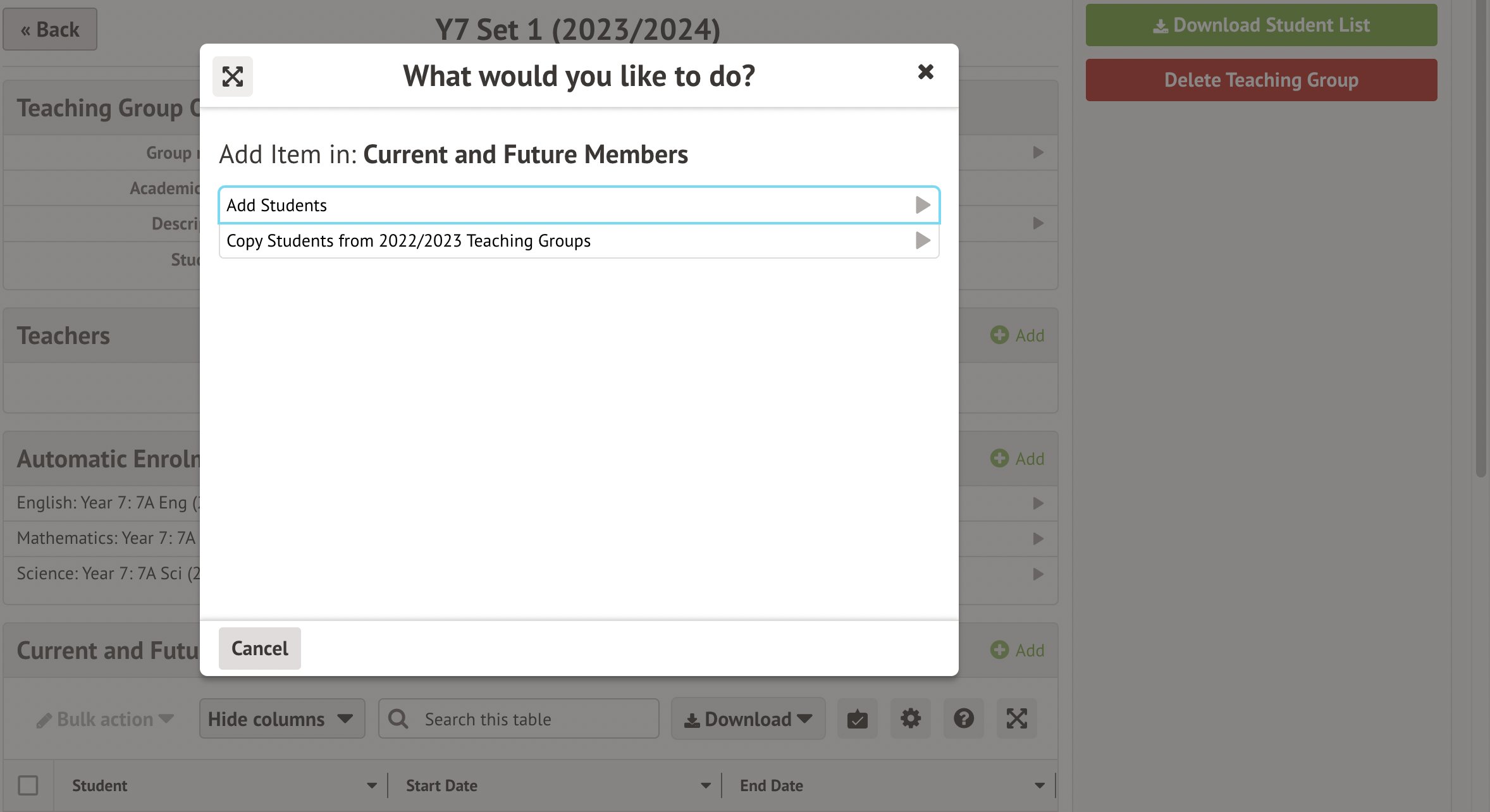 If you want to manually enrol students into teaching groups you can use this step - it’s perfect for adding your Year 7 students into their new teaching groups.