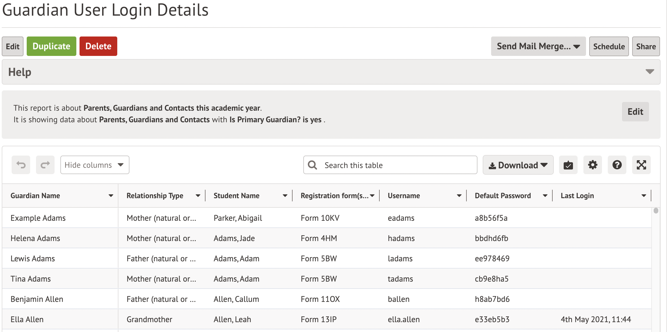 To see a report of guardian user details, click the link at the bottom of this article to download the report template. Do not open the template. You can then import it into your site by following these instructions: Importing a report