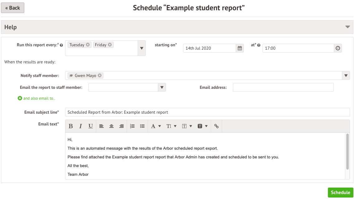 Click the Schedule button to send a copy of your report every week to whomever you choose.