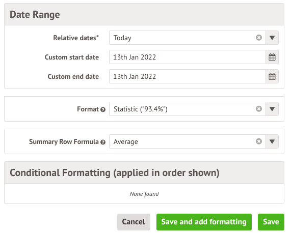 You can set an absolute date, where you explicitly define a date or a period of time between two set dates. For example on 08 Mar 2020, or between 25 May 2020 and 02 Jun 2020. Or, you can set a relative date range, such as “last week” or “last term” which will change as time goes on.