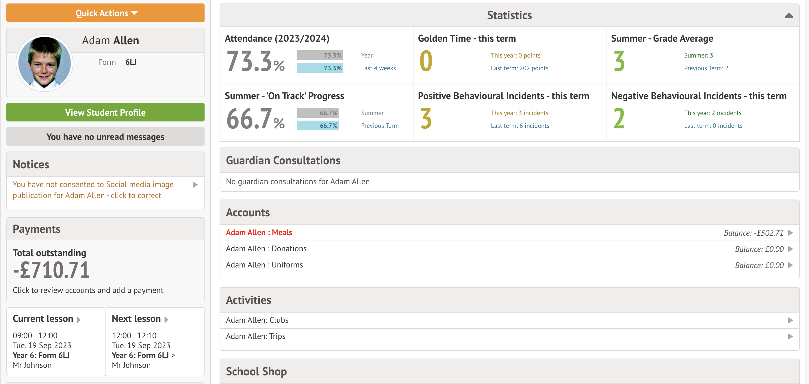 You can then take a look at the Parent Portal. Remember that you can see and edit everything the guardian would be able to.