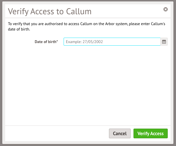 When this is the first time the account has been logged into, or the first time this child is being viewed, the date of birth must be verified.