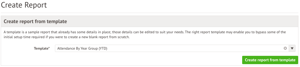 Select our Attendance By Year Group (YTD) report then click Create report from template.