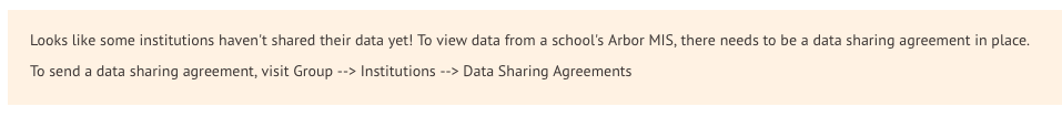 In these pages, you will see a reminder if not all of your schools have shared their data with you. It is important to set up your data sharing agreements to ensure the data shown in your infographics is an accurate representation of all your schools. You can see how to set this up here.