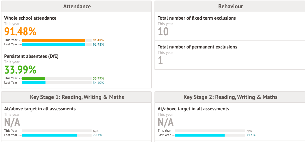 - Statutory authorised absent, unauthorised absent, late - a percentage statistic for authorised absence, unauthorised absence and late. Please note that despite the name, this measure includes all the students at your school no matter their age or if they are guest students