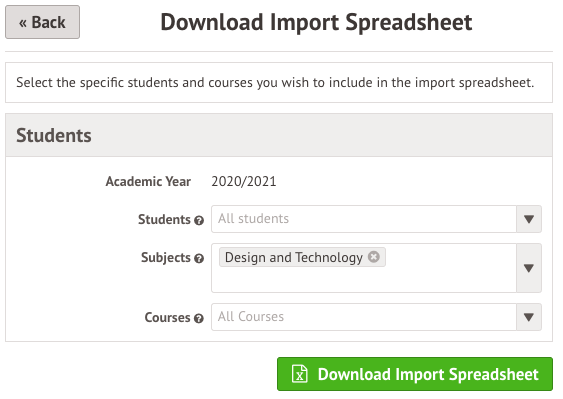 Follow these instructions to download, fill in then reimport the enrolment spreadsheet. Top Tip: Click the Customise Import Spreadsheet button to select only the courses that will be carouseling.