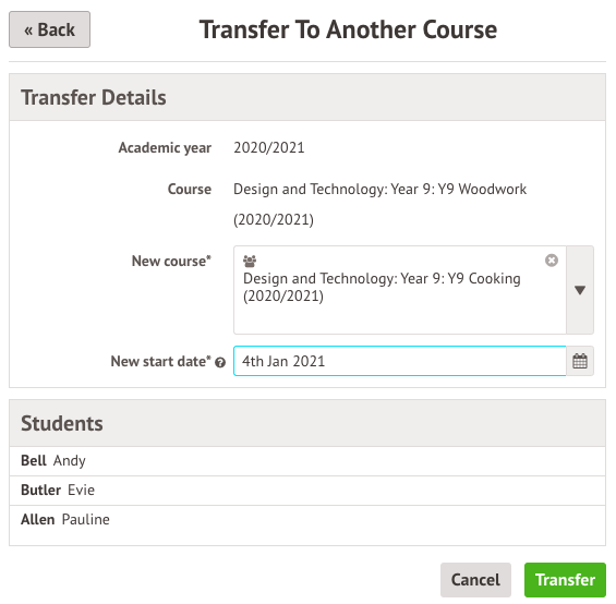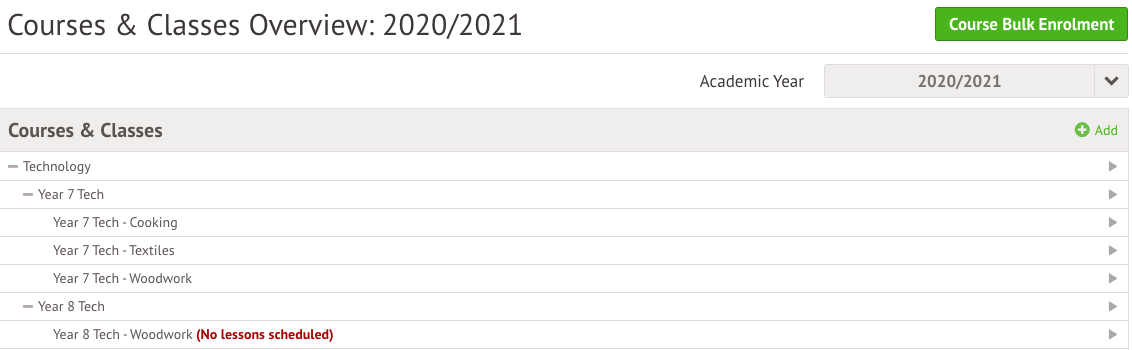 - If you picked option 1, 3 or 4, you'll need to add new students to the courses with the right enrolment dates. Do this is from School > Programmes > Courses > Table View.
