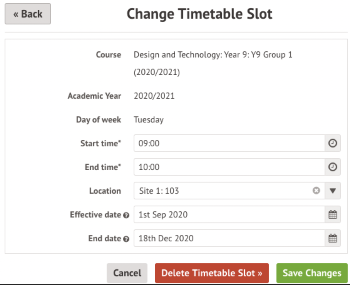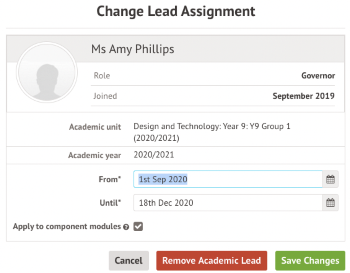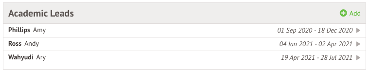 If you picked option 4, it'll be the dates of the staff members you'll need to edit by clicking into the course from School > Programmes > Courses. Click into the Academic leads section to edit the dates of the academic leads, or click into the Class & Lessons section to edit the scheduling of the lesson registers or the room.
