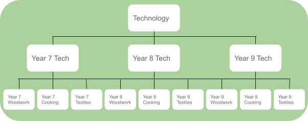 - If you do need to create a new course, we recommend setting up a parent course for the overall subject. Within that add separate modules for each year group taking the parent subject. Within each year group you can add a module for each class students will be taking. The structure will look a little like this.