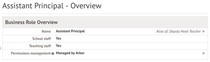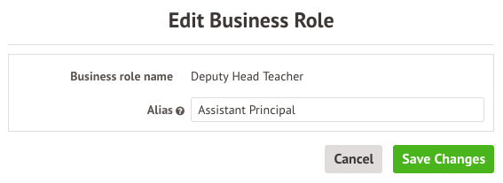 To edit the Alias of a Business Role, go to School > Users & Security > Select the Business Role.