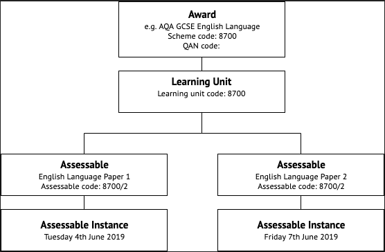 Exams will have their own exam codes as well, but for candidate entry purposes, you should focus on having the correct AWARD and LEARNING UNIT codes. These are the codes that awarding organisations require in terms of submitting candidate entries and returning results.
