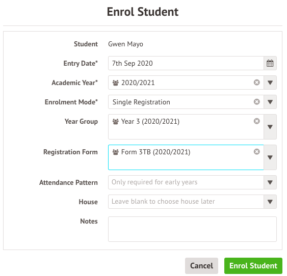 • If a student hasn't been given an enrolment or is returning from a period of attending another school (such as if the student left in year 9 but returned to your 6th form) you'll need to add a new enrolment into your school using the instructions in this article.