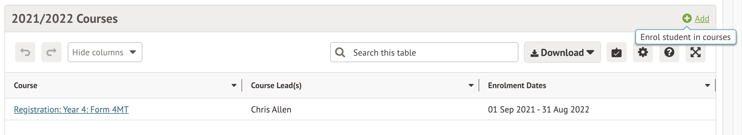 • Student Profile: Enrolment: View All/My Students - view student enrolments