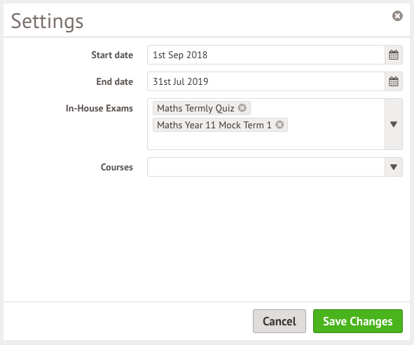 Go to Results Overview from the left-hand menu. Use the filters at the top of the page to choose the exam results you would like to analyse together. Click Save changes.