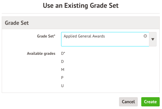 When selecting a pre-defined grade set, you will need to select the grade set, to preview the available grades, then click Create.