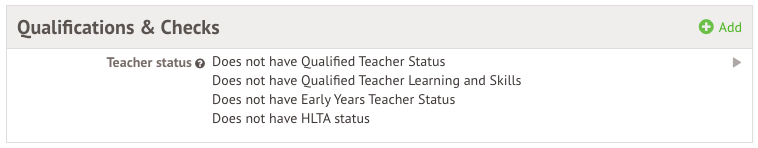 Click +Add in the Qualifications & Checks section of their staff profile to add the NASENCO qualification.