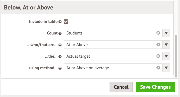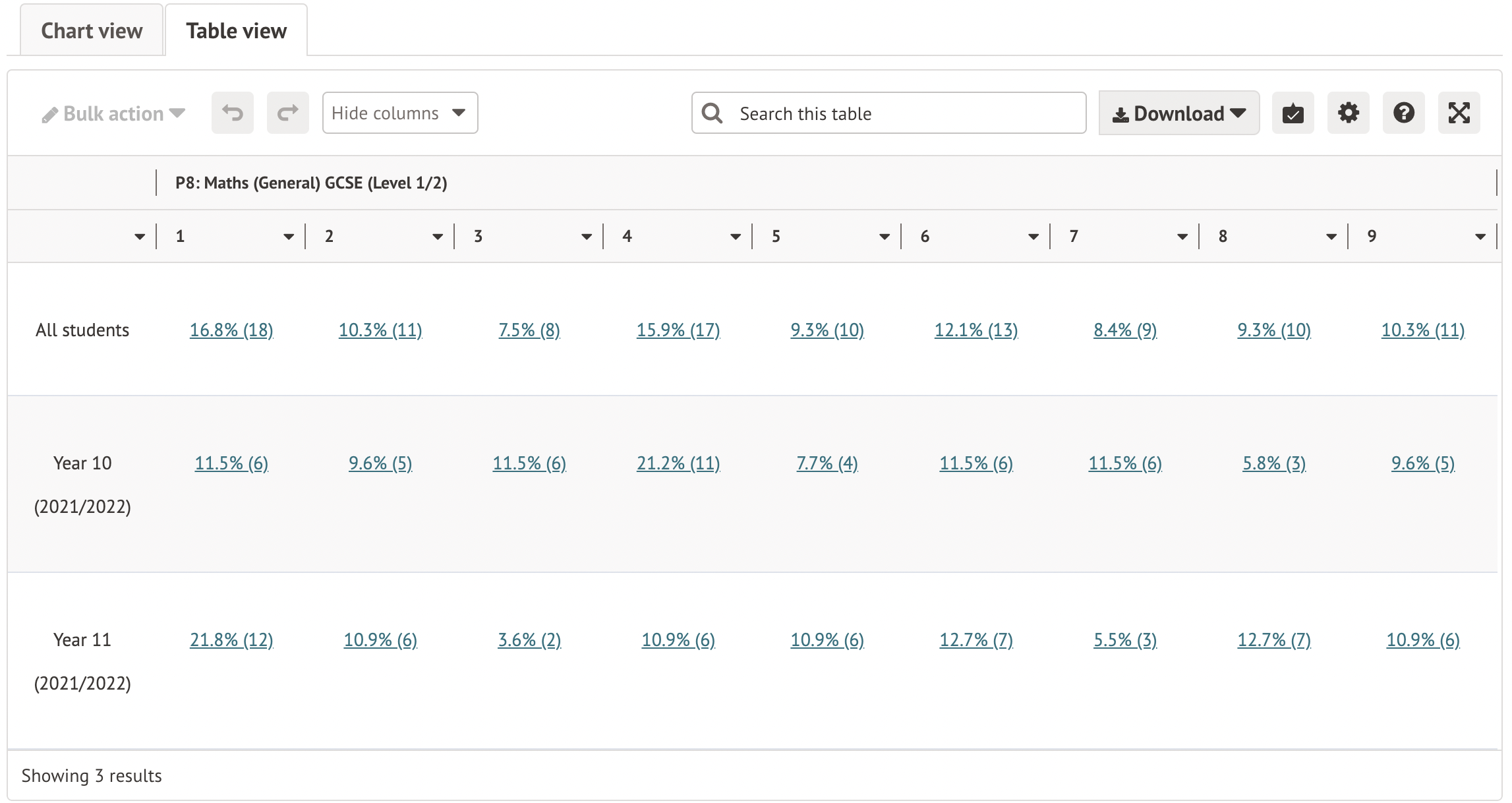 If you don't tick this box, the table will show what percentage of the students are working at each grade for each assessment period.