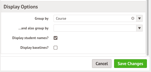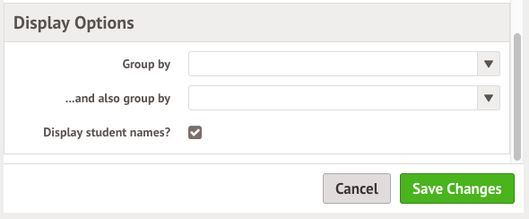 Clicking into the filter bar lets you select the assessments to display and how to group your students.