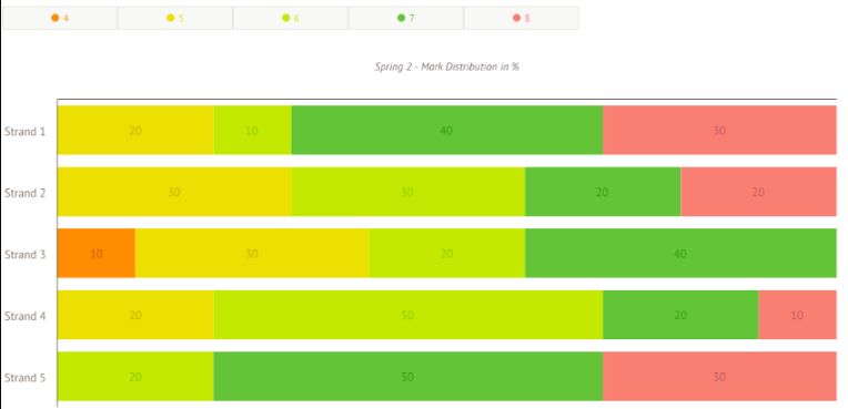 The screenshot below shows the academic year view of a summative assessment with five strands.