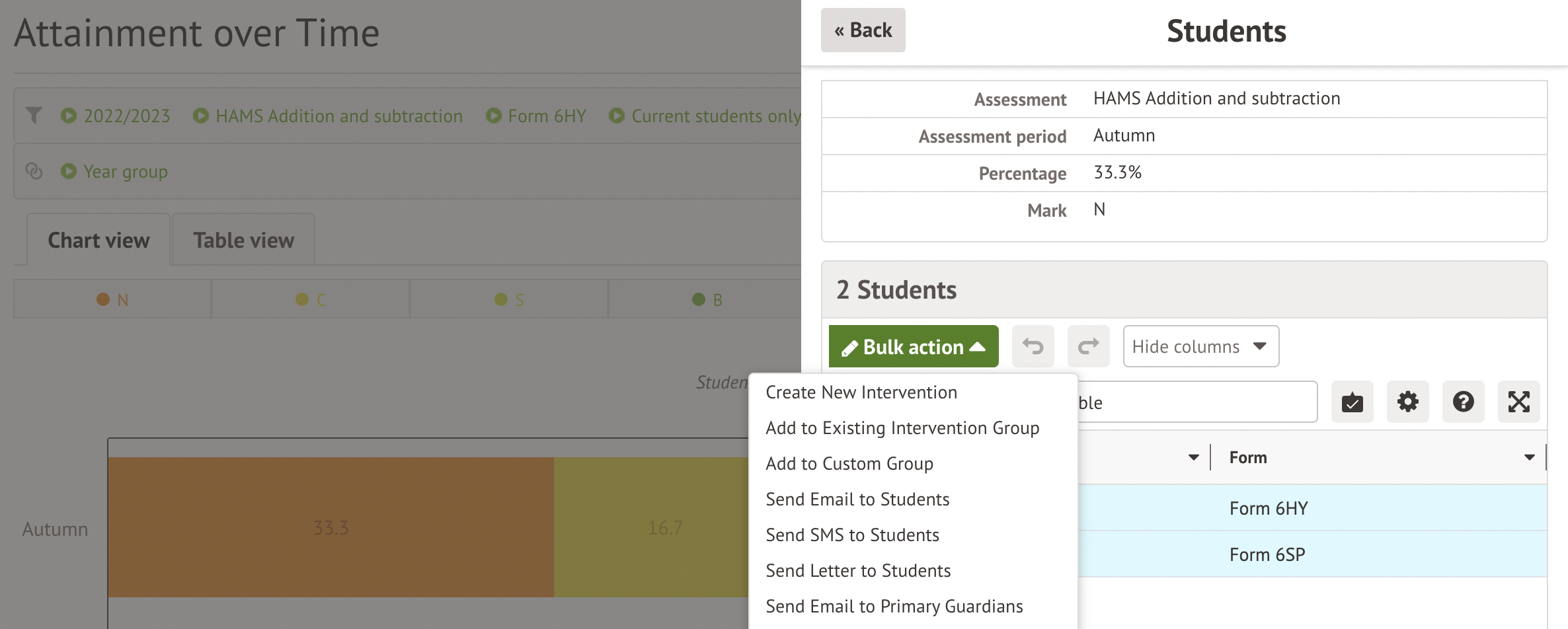 Now you know there are students who are not making progress you can take further actions. You can add them to an intervention straight from this page, or have a conversation with the teacher to see how these students can be better supported.
