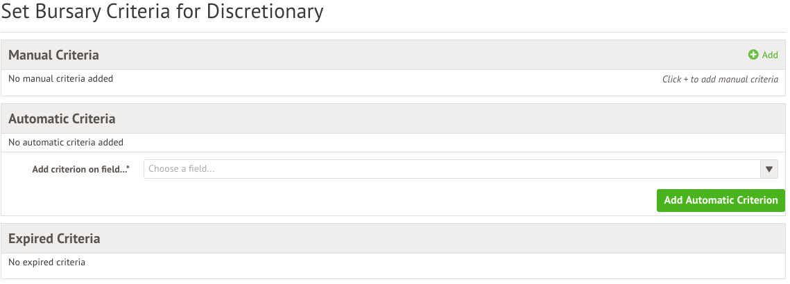 On this page, you'll set up award criteria which will be used to help you determine whether a student should receive the bursary.