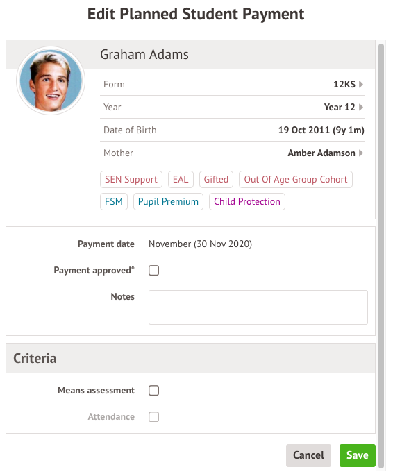 - Bursaries: Administer - Manage planned bursary payment dates, bursary planned payment amounts and bursary criteria. Manage bursary eligibility, payments and payment criteria and notes for all students.