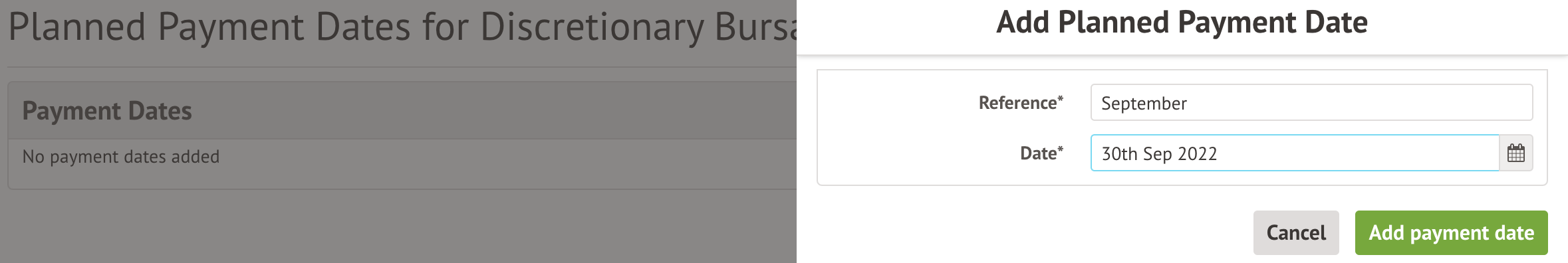 The next step is to add a date that each bursary payment will be paid.
