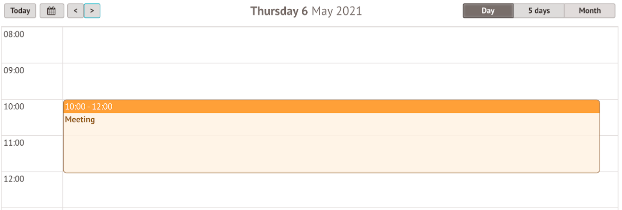 Events are shown in orange. If the staff member has an event scheduled, then this would need to be deleted to restore available bookable slots. For more guidance on events, please check out our guide on Creating and Managing Events.