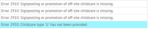 If you do not select No in the Childcare signposting field, this will trigger Error 2910.