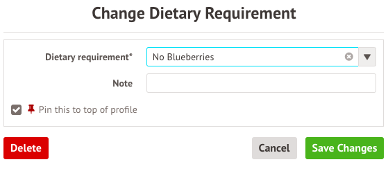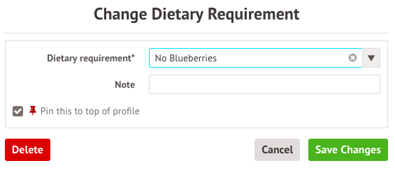 Please note that you can only edit the dietary requirement and not any medical conditions that may have been added at the same time as the dietary requirement.