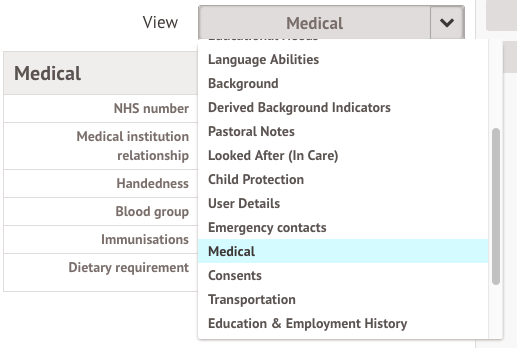 - Student Profile: Meals: Administer All/My Students or Student Profile: Medical: Administer All/My Students permission - add or edit dietary requirements.