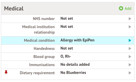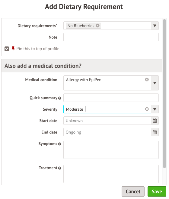 You can choose whether to log a medical condition alongside the dietary requirement or not.