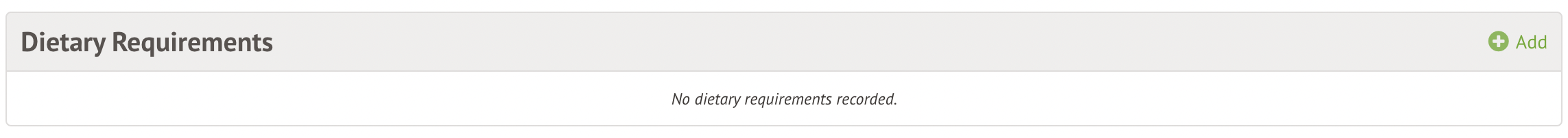 Go to Meals from the left-hand menu of the student's profile, and click +Add in the Dietary Requirements section.
