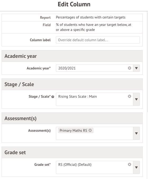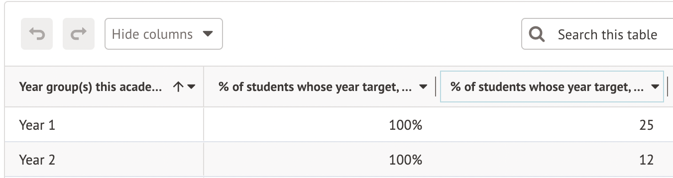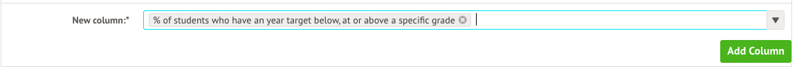 This will be the % of students who have a year target below, at or above a specific grade column.