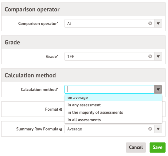 - Calculation method - Choose how many assessments contribute to the total. If you've only selected one assessment, you can choose in all assessments