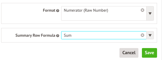 - Summary row formula - This will display an average by default, but if you are looking at the numbers rather than a percentage, change this to Sum