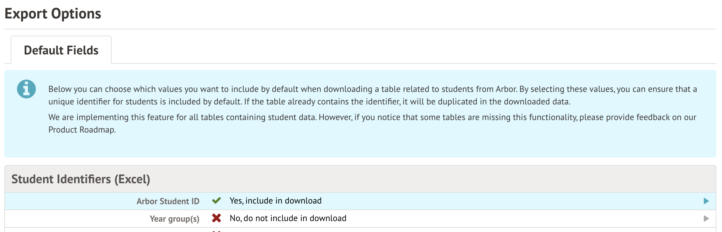 When downloading reports outside of Arbor, you can customise some additional fields to include: Customising the download with Unique Student Identifiers