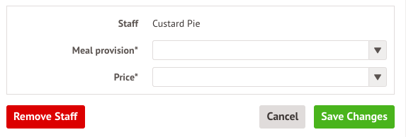 Click on the Staff tab, click on the staff member to edit the meal or click Remove Staff.