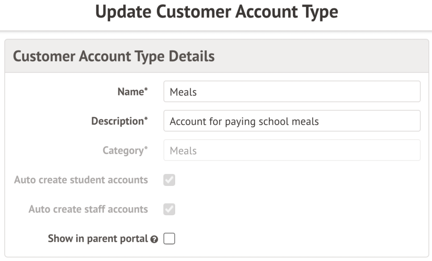 • Required option for schools who use Meal Menus to prevent parents from being abe to select staff meals