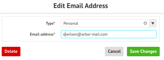 - Click Delete to delete the email address