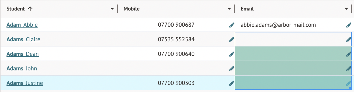 For example, for the top row in the screenshot above, this can cause login issues for the staff member and the guardian, but not the student, even though the email address is present on all three account types. This is because the system will attempt to log in the student first, but this will stop the staff member or guardians from being able to log into their staff or guardian accounts.