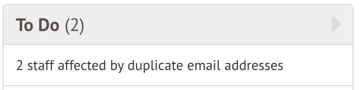Staff with the School: General Admin: Administer permission can also see a count of how many of the duplicates will cause login issues for staff on your homepage, in your To Do list - clicking this will also take you to the resolution page.
