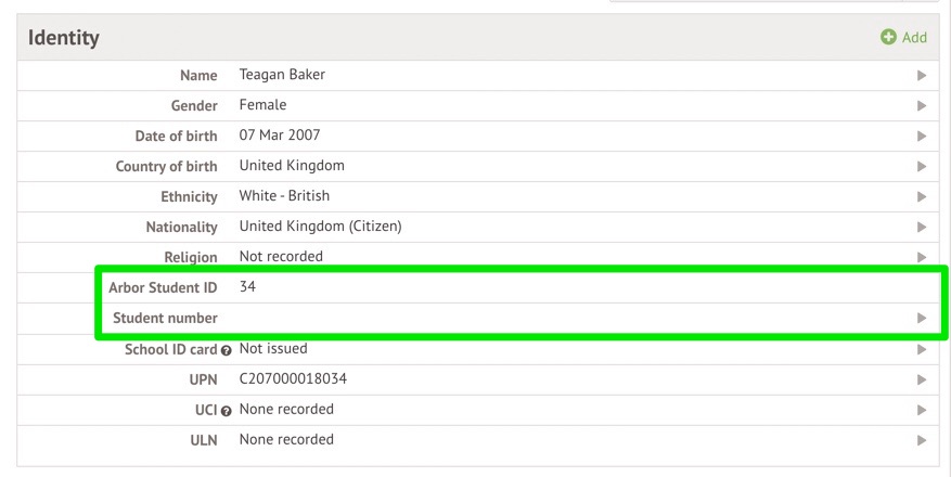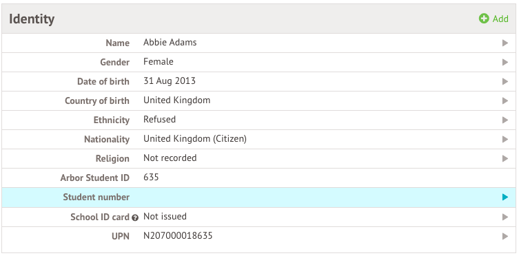 The Student Number is a field that schools can use if they wish to record any student number such as ID badge numbers or admission numbers.
