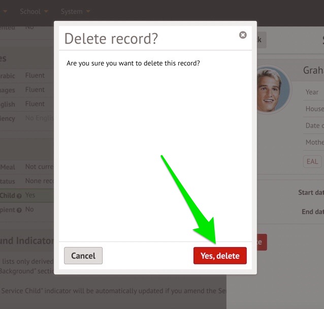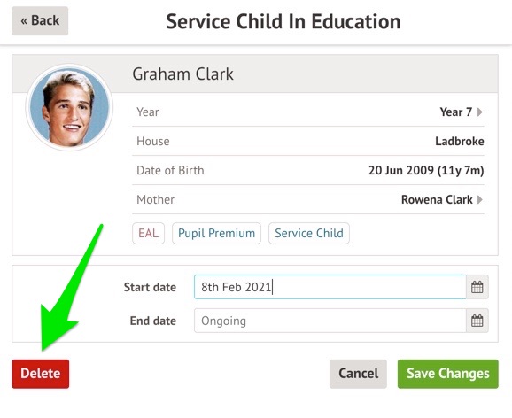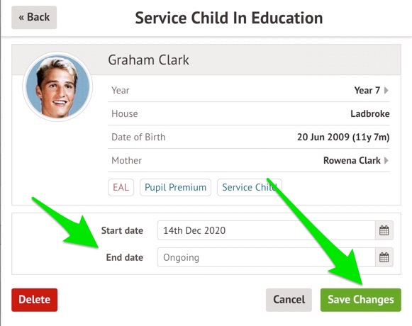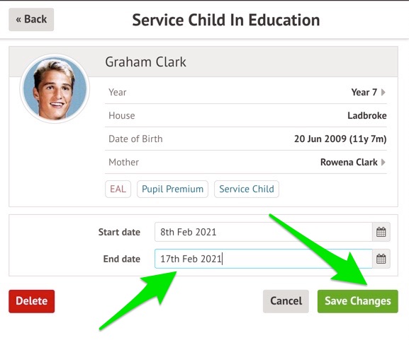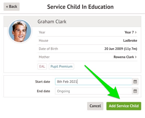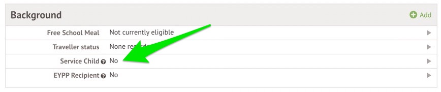 If the dates are incorrect for their Service Child status and need changing, click on the Service child field.
