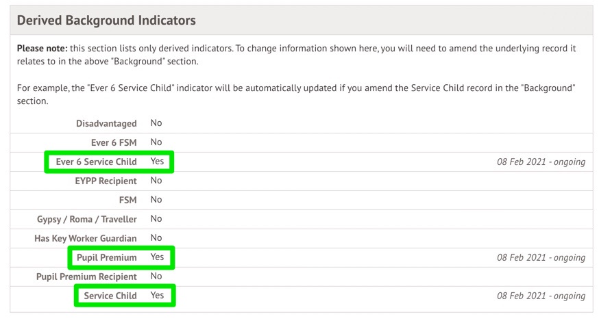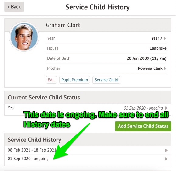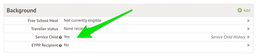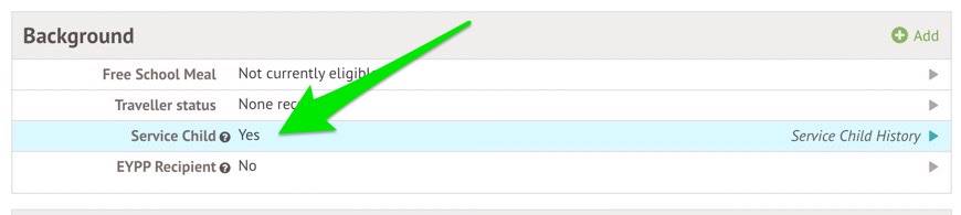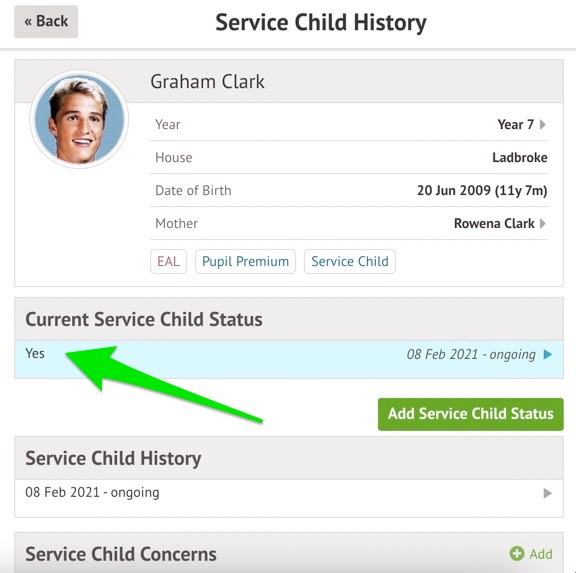 It will now show as Service Child 'No' but indicate they do have a Service Child History.