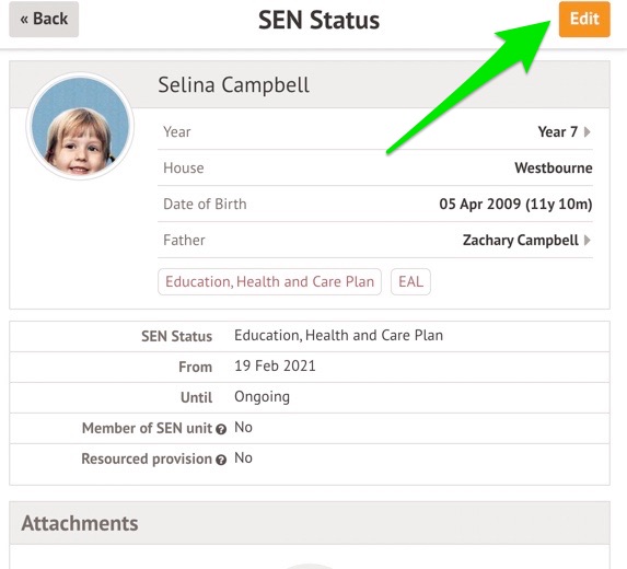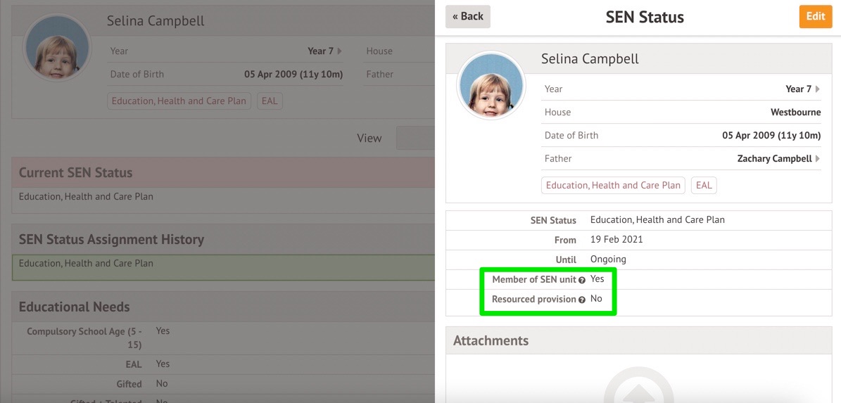 4. Enter the SEN information and make sure to tick the Member of SEN Unit box or the Resourced Provision box, depending on which applies.