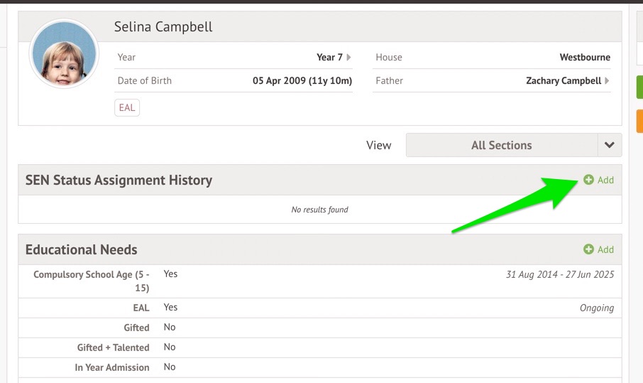 Go to the Student Profile and click Educational Needs in the left-hand menu.