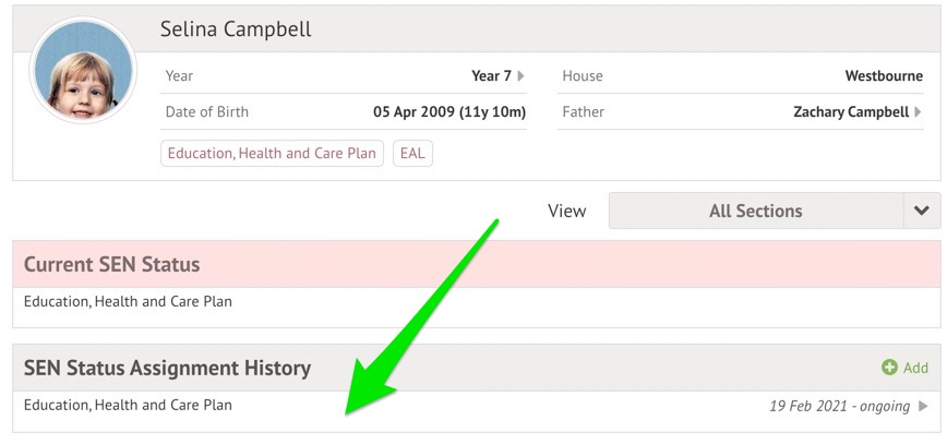 You will be able to see this when you click on the SEN status under the SEN Status Assignment History section.